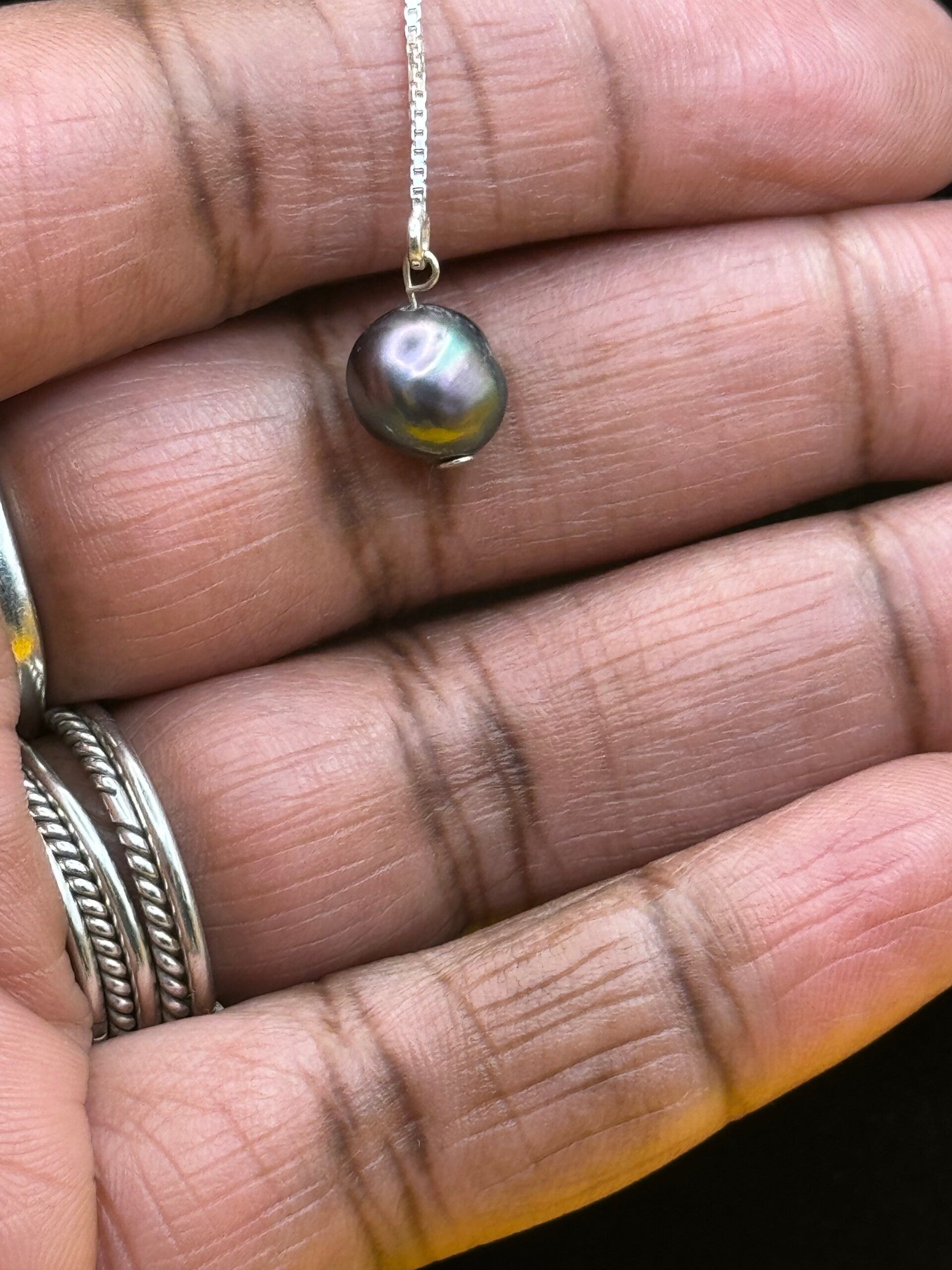 Chaine en argent 925 avec des perles d'eau douce de couleur sombre et irrégulières.